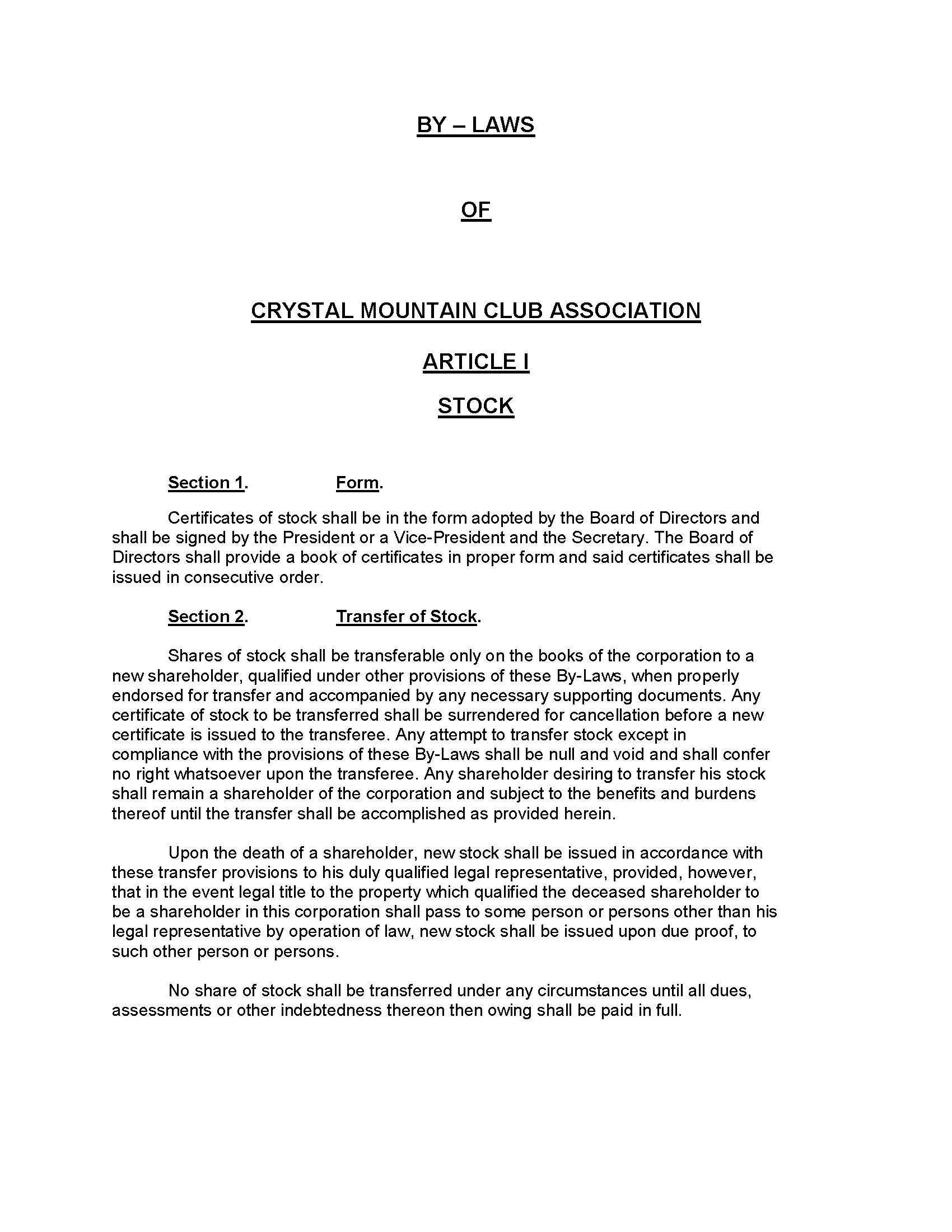 The Crystal Mountain Club Association is governed by a specific set of bylaws. A PDF copy of the Crystal Mountain Club Association Bylaws is available here or by clicking the image.